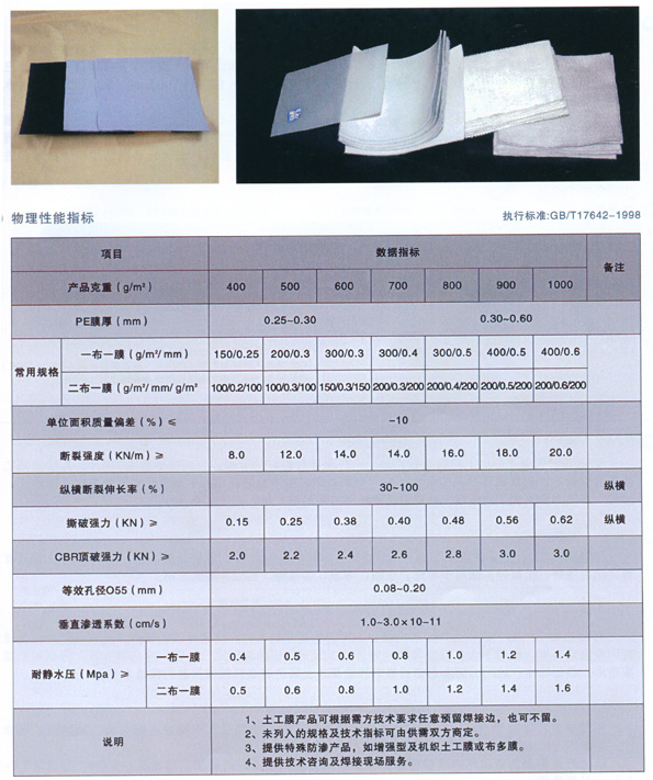 復(fù)合土工膜具有獨(dú)特的防滲、防護(hù)和加筋、排水、隔離等功能,其高度的韌性和優(yōu)良的耐化學(xué)侵蝕、抗老化性能超出了單純應(yīng)用布或膜的使用指標(biāo),便于施工,不需粘合劑,應(yīng)用領(lǐng)域更加廣泛,使用起來更加方便。